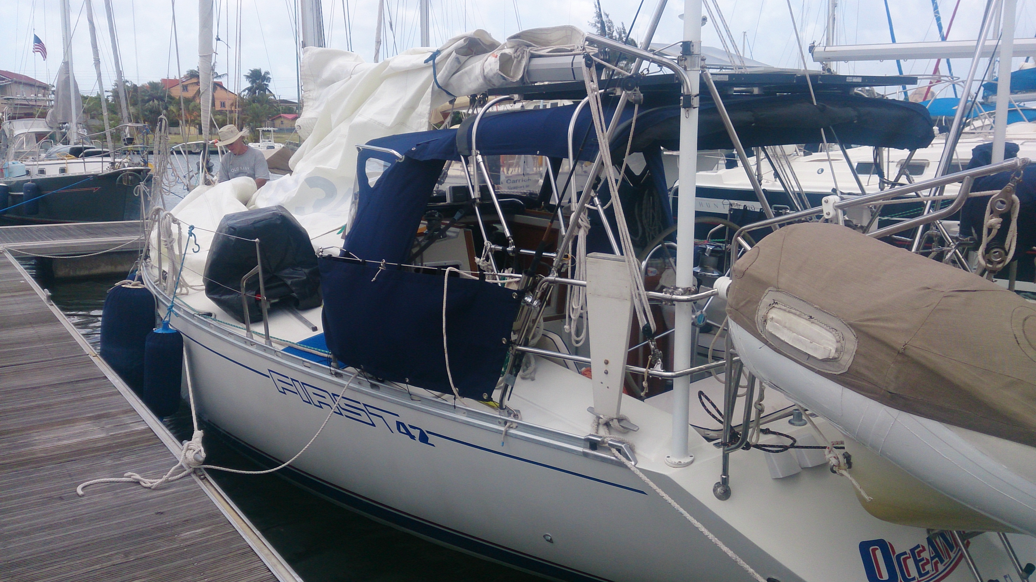 Didn’t think too much about it since then, until we spotted a beautifully kept First 42 in Marigot Bay a week ago. I said to myself, could it really be…? And sure enough, when I got a glimpse of her transom – Ocean Angel!
